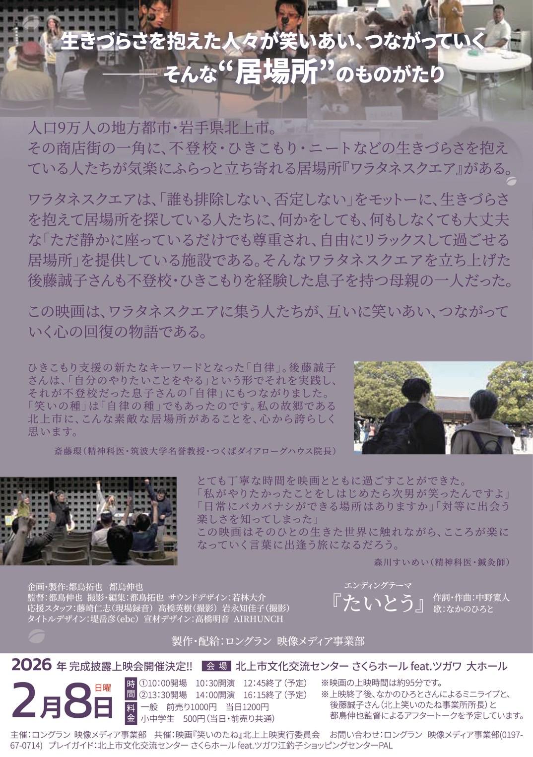 【2026年2月8日(日)北上市さくらホール大ホール(2回上映)】