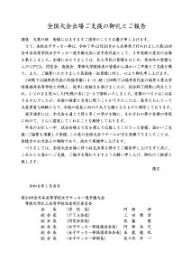 全国大会出場にかかわり、多くのご支援を賜り厚く御礼を申し上げます。